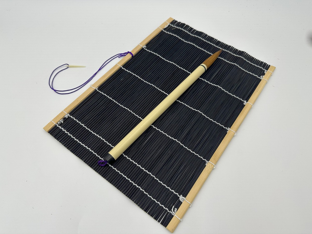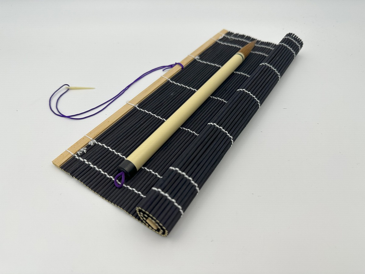 使用前後の筆を巻いて持ち運ぶ際に筆を保護したり、汚れがカバンに付かないようにする道具です。適度に水分を吸収してくれる天然素材の筆巻が筆の余分な水分を吸い取り、筆巻自らの寿命を縮める代わりに筆の寿命を延ばしてくれるものと考えます。ナイロン素材等の湿度調節ができない素材はできれば避けたいところです。竹の主な産地は浙江省、福建省、安徽省で、節目の間隔が長い竹の産地です。竹の皮付き表層材“頭青”、頭青を炭化させて飴色に照りだした玉竹、竹内部の各層などによって材の価格が変わります。