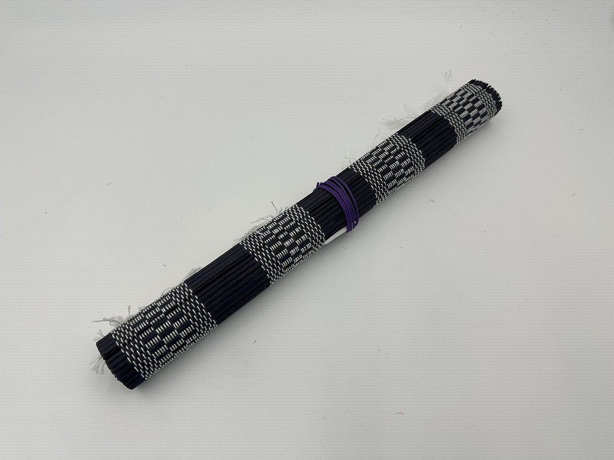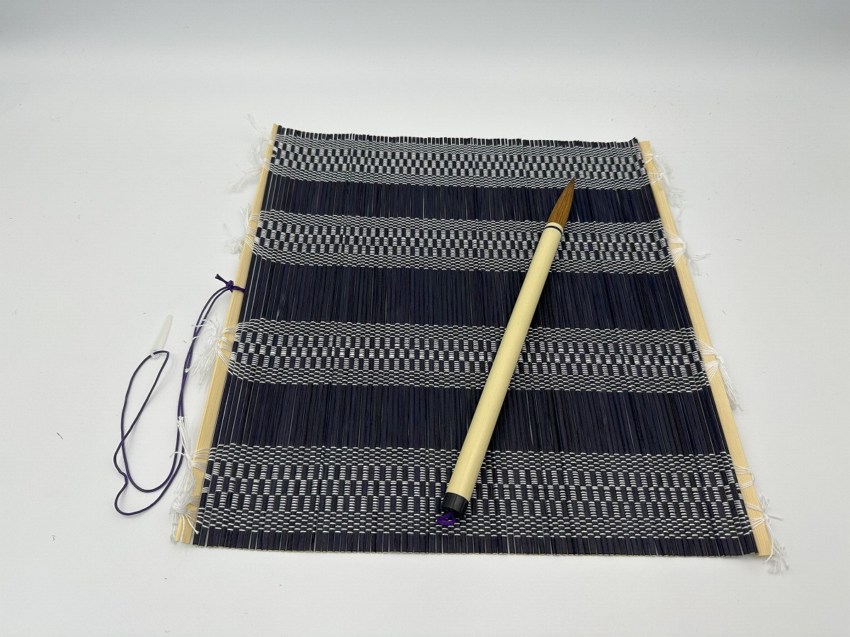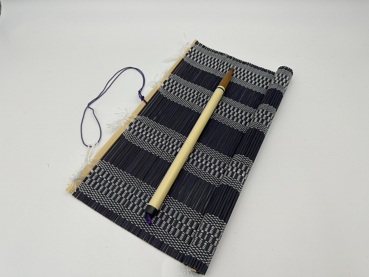 使用前後の筆を巻いて持ち運ぶ際に筆を保護したり、汚れがカバンに付かないようにする道具です。適度に水分を吸収してくれる天然素材の筆巻が筆の余分な水分を吸い取り、筆巻自らの寿命を縮める代わりに筆の寿命を延ばしてくれるものと考えます。ナイロン素材等の湿度調節ができない素材はできれば避けたいところです。竹の主な産地は浙江省、福建省、安徽省で、節目の間隔が長い竹の産地です。竹の皮付き表層材“頭青”、頭青を炭化させて飴色に照りだした玉竹、竹内部の各層などによって材の価格が変わります。