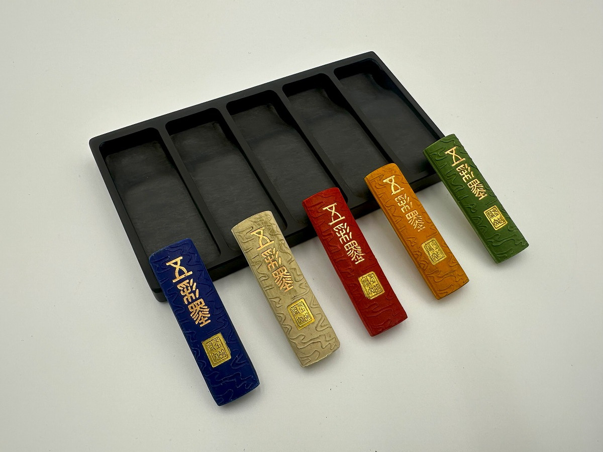 胡天注が1700年代に創業した墨店が胡開文です。店名の開文は徽州府孔廟の“天開文苑”の額からとったということです。数ある胡開文を名乗る工房の中でも歙県徽墨廠が前身の本流筋で自らを他と区別するために頭文字に“老”を付しているのでしょうか、その老胡開文でさえもあちこちに数軒あるようです。それぞれの皆様が我こそが我こそが胡開文の継承者ですと競り合っているようにも見えます。1999年から会社内に安徽歙硯廠も併設されていて、歙州硯の老坑原石を大量に収蔵し専門の硯工が製硯に精を出しています。