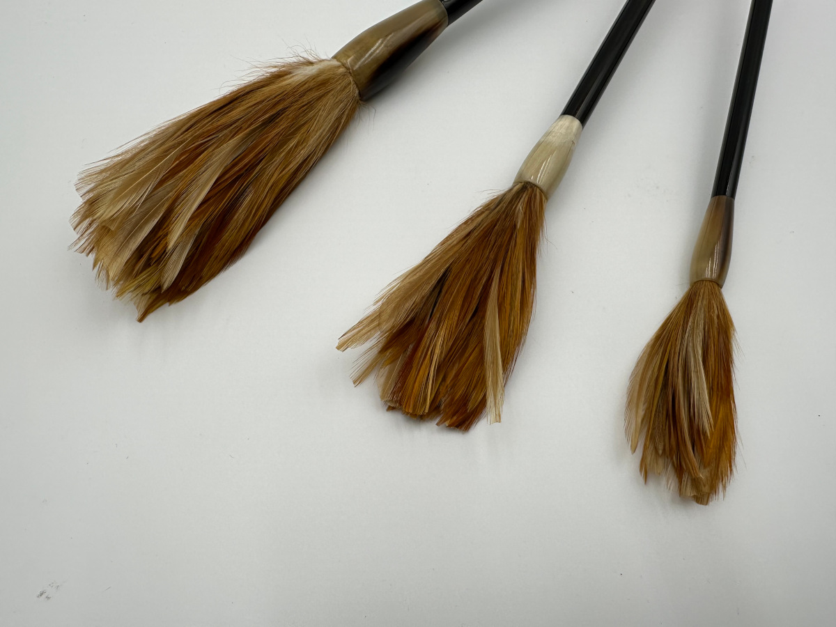 鳥、獣、植物等、あまり一般的でない原料で筆を作ってみました。どう使うかはお客様次第です。