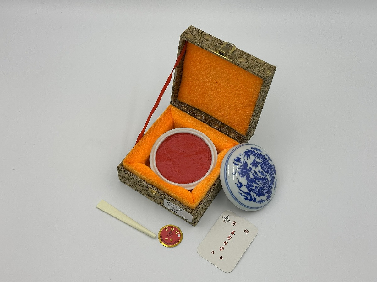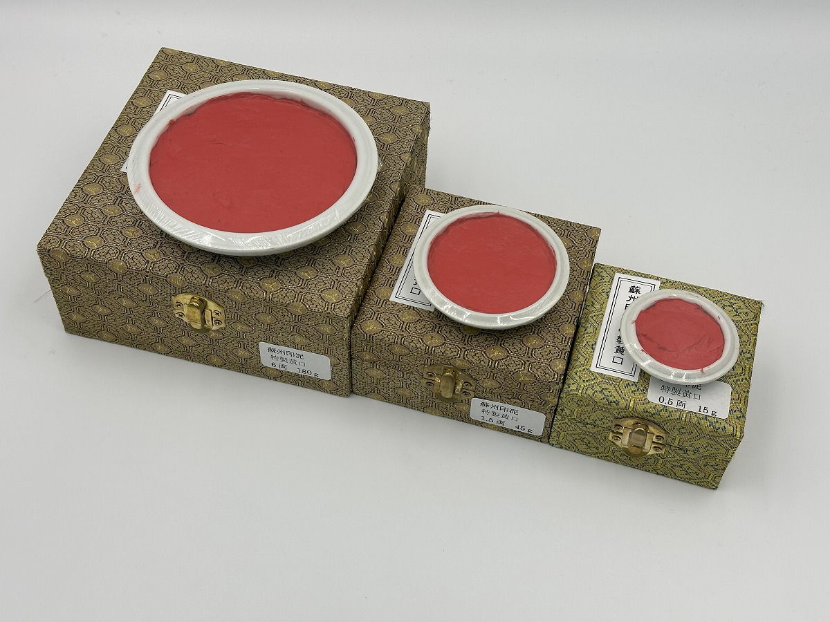 蘇州姜思序堂は1628年に蘇州にて姜という姓の画家が創業した中国画用の顔料を製造する会社です。太平天国の乱の戦火の中では一時製造を中止し各地へ疎開していましたが、その間、元従業員であった黄石裔が黄絵林堂として顔料製造を継続していました。戦火が収まると姜氏の子孫は蘇州へ戻り、黄氏の製法を習得し再び蘇州姜思序堂を復業したとのことです。その後国営や公私合営、解体、再組織を経て、現在に至ります。近年では任伯年、呉昌碩、徐悲鴻、斉白石等多くの著名画家たちが伝世の名画上でここの顔料を使用しています。中国画で使用する天然鉱物顔料は印泥の原料と共通する面があり、早くから古塔牌印泥の製造もおこなっています。