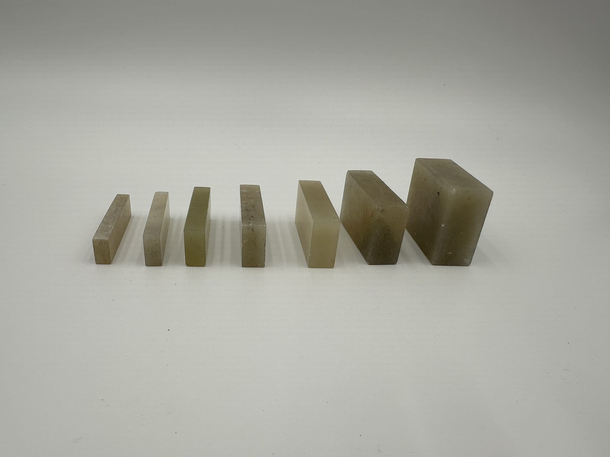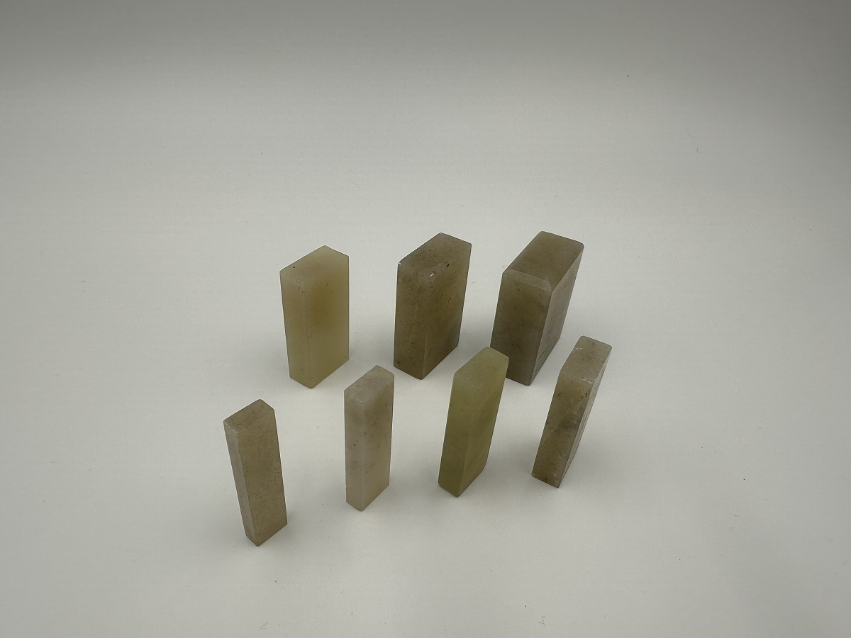 中国の東北部遼寧省から産出される石印材です。蒟蒻のような色彩の石で、ロットにより多少色が変わり、その色によって若干彫り味も変化します。独特の粘りがあり、人によっては好き嫌いがあると思います。原料産出が不安定で入荷が運任せの石材になりつつあり、在庫状況も不安定になっています。